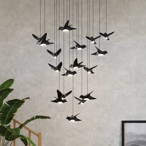 Ne pri vsaki viseči svetilki se pojavlja vprašanje ustreznega vira svetlobe. To je zato, ker so na voljo tudi s trajno vgrajeno svetlobno tehnologijo**, kar pomeni, da je sodobna tehnologija LED v zadnjih letih oblikovalcem omogočila veliko možnosti za oblikovanje vitkih oblik. Če ste odvisni od ločenih svetilk, so LED dobra izbira zaradi dolge življenjske dobe, velikega prihranka energije in različnih optik.