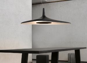 Poetično oblikovanje za FabbianNa njem je jasen podpis Monice Armani: viseče svetilo Silenzio, ki ga je oblikovala za podjetje Luceplan. Svetilo združuje tekstilno estetiko z inovativnim učinkom absorpcije zvoka za prijetnejši ambient v prostoru. Oblikovalka ustvarja prav to prefinjeno povezavo tudi v svojih drugih arhitekturnih projektih, na primer v salonu za skupino Poltrona Frau.
