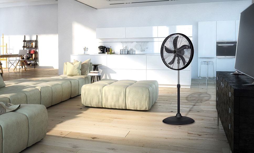 Namizni ventilatorji so najprimernejši za ciljno osvežitev - na primer za vašo pisalno mizo. Zahvaljujoč nastavljivemu nihanju in naklonu lahko podstavne ventilatorje nastavite individualno ter zagotovite ustrezno kroženje zraka in osvežitev - tudi v velikih prostorih. Hladilni učinek stropnega ventilatorja je neprekosljiv - večji kot je premer, večji je prostor, ki ga je treba ohladiti. Edino dodatno delo je predhodna namestitev.
