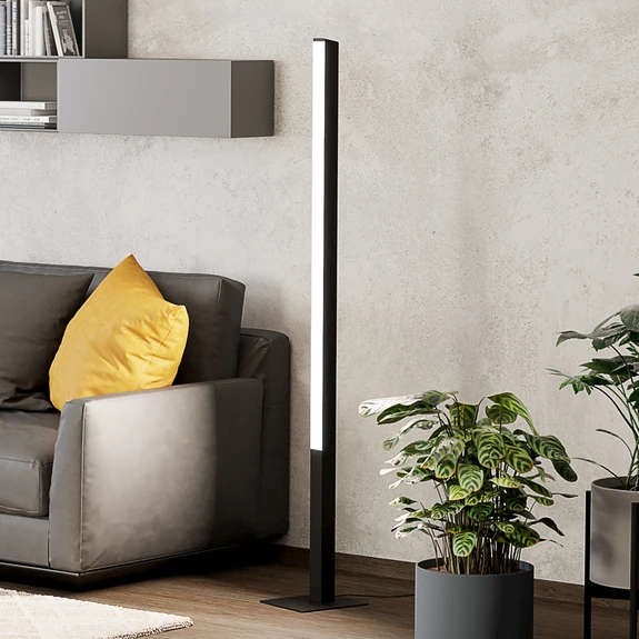 Talna svetilka Simolaris-Z LED z nožnim stikalom, ki jo je mogoče pametno upravljati Talna svetilka Simolaris-Z LED zagotavlja dodatno ambientalno osvetlitev v sodobnih bivalnih prostorih. Vgrajene diode LED zagotavljajo barvno ali belo svetlobo, ki je primerna za vsak del dneva in vsako priložnost. Svetlobo lahko tudi priročno zatemnite. Vse to je mogoče z ustrezno združljivo aplikacijo, ki je s svetilko povezana prek tehnologije ZigBee. Ugašanje, spreminjanje barve svetlobe, ustvarjanje lastnih scen, časovno programiranje ali celo povezovanje in združevanje več luči - vse to je mogoče. Talno svetilko Simolaris-Z LED je mogoče povezati tudi z drugimi združljivimi sistemi pametnega doma, ki uporabljajo tehnologijo ZigBee 3.0. Neposredna povezava z Amazon Echo in Google Home omogoča tudi glasovno upravljanje. Funkcije / združljivost: - upravljanje z brezplačno aplikacijo AwoX HomeControl - združljiva s sistemi pametnega doma drugih proizvajalcev, ki uporabljajo tehnologijo ZigBee 3.0 - možna neposredna povezava z Amazon Echo in Google Home - večji doseg zaradi dodatne mreže Bluetooth - združljiva z vsemi izdelki iz serije EGLO connect-c Bluetooth - možnost upravljanja z ustreznim daljinskim upravljalnikom tudi brez dostopa do interneta (glej dodatno opremo)