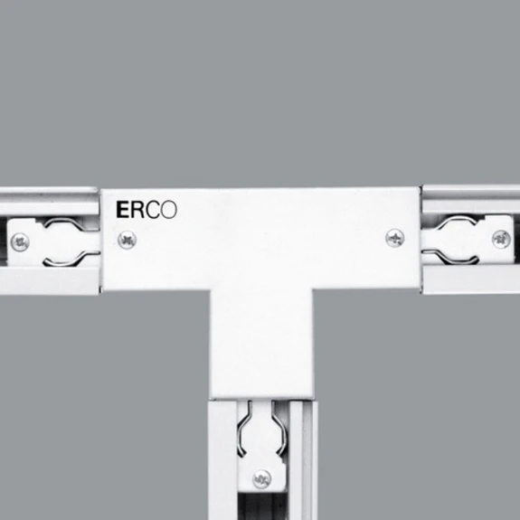 T-priključek za 3-fazne vodnike ERCO Ta T-priključek s plastičnim ohišjem omogoča povezavo treh 3-faznih vodnikov. Zaščitni vodnik na desni strani, možnost napajanja z električno energijo, prehodno ožičenje.
