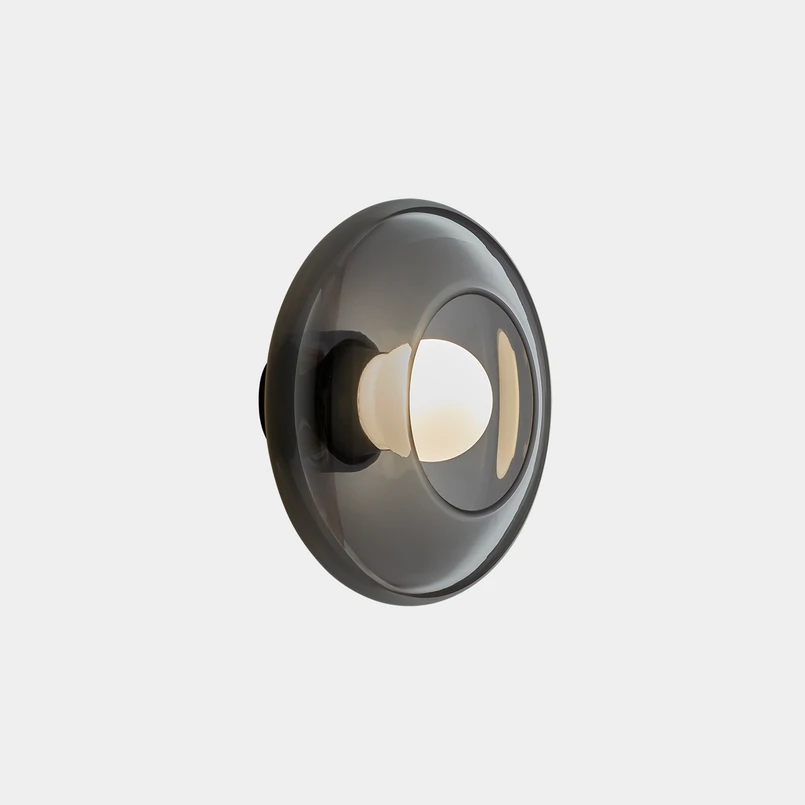 Nežna osvetlitev in dekorativna paša za oči - stenska svetilka Trip Glass Oblika stenske svetilke Tripp Glass je prozorna in nežna ter se harmonično zlije z vsakim bivalnim prostorom. Svetloba se ustvarja v sredini steklenega senčila, bleščanje pa je zmanjšano z dodatnim matiranim steklenim senčilom. To ne le nežno osvetljuje okolico, temveč tudi odlično poudari samo svetlobo. Še več prijetnosti lahko dosežete z uporabo svetlobnega vira z možnostjo zatemnitve in namestitvijo stenskega zatemnilnika (ni priložen).