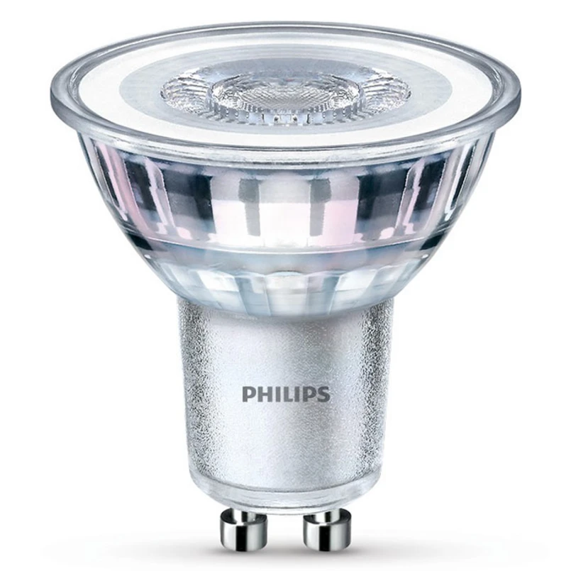 Reflektor GU10 LED, toplo bela barva 2.700 K, nezatemnljiv V številnih svetilkah lahko ta reflektor GU10 LED nadomesti običajne 25 W halogenske reflektorje. Poleg varčevanja z energijo ga odlikujeta tudi dolga življenjska doba in visoka stabilnost preklopa. Ta svetlobni vir izpolnjuje merila EyeComfort, ki jih je razvil Philips. Proizvaja svetlobo, ki je prijazna do oči. Tehnični podatki / lastnosti - 36° kot snopa svetlobe - topla svetloba s temperaturo 2 700 K - privlačna oblika - ni mogoče zatemniti