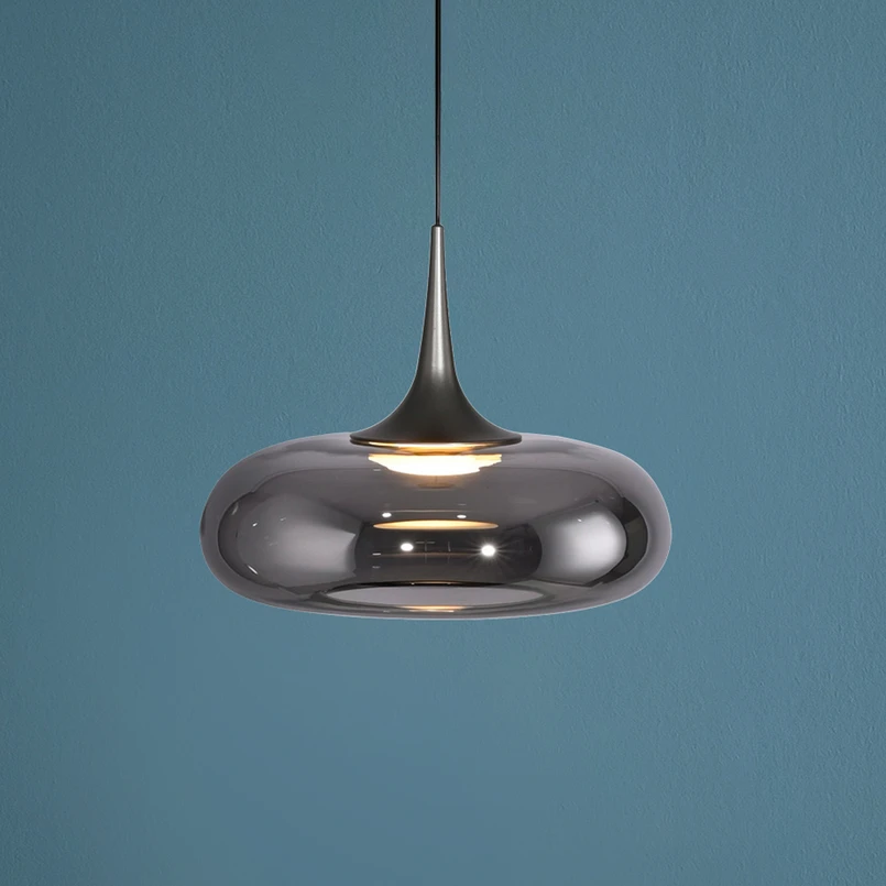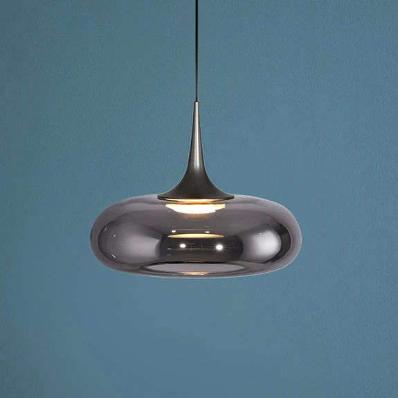 LED viseča svetilka Posh s senčnikom iz dimljenega stekla, višina nastavljiva