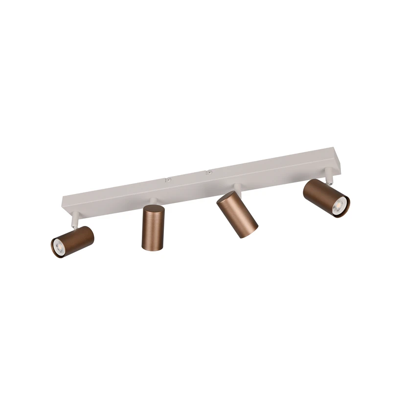 Reflektor Taryn prepriča s svojim sodobnim dizajnom iz visokokakovostnega kovina v harmonični kombinaciji rjave in bele barve. S svojimi štirimi nastavljivimi glavami omogoča ciljno usmerjanje svetlobe, ki se idealno prilagaja individualnim zahtevam različnih prostorov. Naj bo v dnevni sobi, jedilnici, hodniku ali kuhinji – ta reflektor ponuja raznolike možnosti uporabe in zagotavlja optimalno osvetlitev.